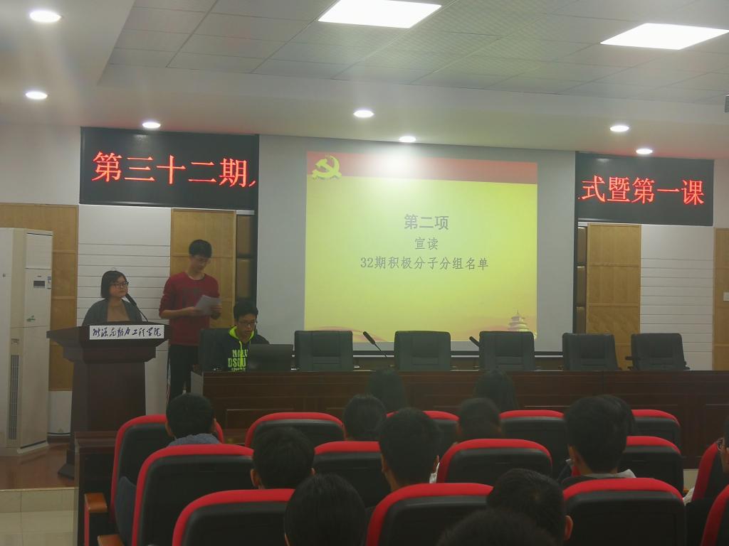 开班仪式在嘹亮的国歌声中拉开帷幕,随后水利工程学员党建辅导员邓奕琳宣读了第32期积极分子培训班的学员名单以及党校学习纪律、课程设置、考核方式等安排。邓奕琳对全体学员提出两点希望:首先要珍惜此次理论学习的机会,增强对党的认识,牢固树立科学的三观;其次,要珍惜此次两院学生交流的机会,在吸收理论知识的过程中相互学习,相互促进,建立友谊。
