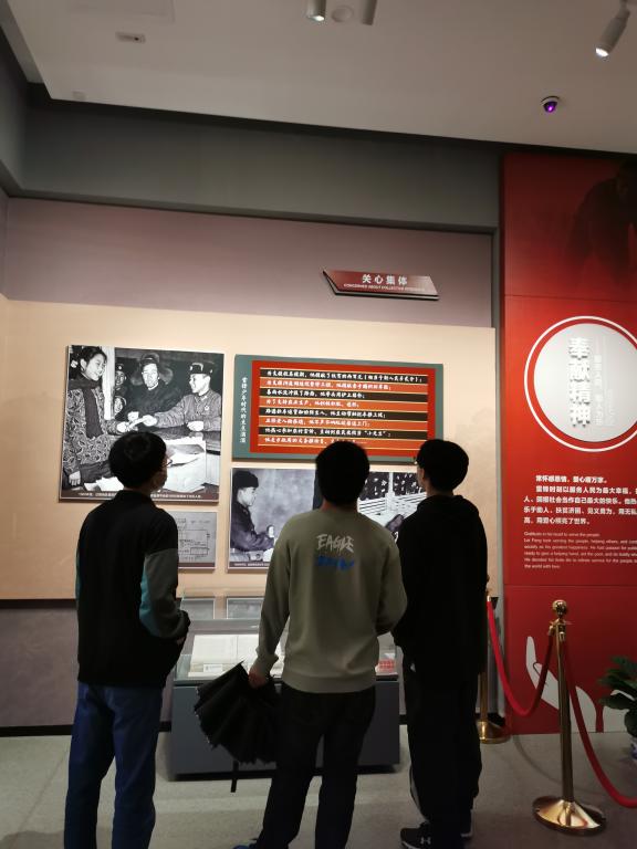 “一滴水只有放进大海里才永远不会干涸,一个人只有当他把自己和集体事业融合在一起的时候才能最有力量。”“我们是国家的主人,应该处处为国家着想。”“我愿永远做一个螺丝钉。”在雷锋生平事迹陈列馆,同学们不停地驻足思考,凝视着墙上一张张老照片,读着一段段激人奋进的文字,感悟着雷锋始终把个人的全部实践紧密地同祖国的前途命运联系在一起、全心全意为人民服务的理想之光和力量之源。“常听‘学习雷锋好榜样’,经过今天的学习确实感受深刻,非常佩服雷锋同志的先进思想,也深深折服于其伟大的人格魅力。”学生党员张海洋感慨道。