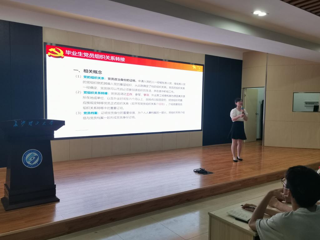 刘灿及党建工作组张扬同志就毕业生党员组织关系转出流程及毕业生档案现存问题进行讲解。李永睿对毕业生党员责任岗进行布置,强调全体毕业生党员要站好最后一班岗。