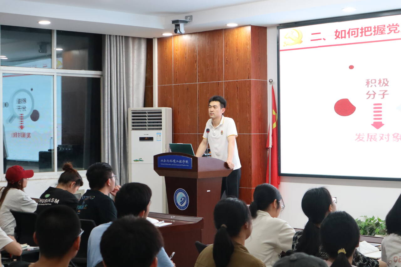 4月28日晚,水利学院分党校在云塘校区工科三号楼B319举行第43期入党积极分子培训班第四课《党员条件与入党程序》,本次课程由水利学院22级辅导员陈鑫林主讲。