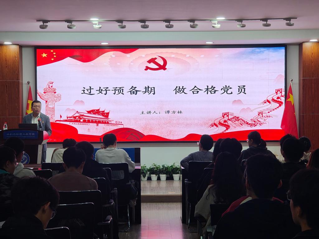 《预备党员如何度过预备期》专题党课由材料学院党建辅导员谭方林老师主讲。他结合实际从党员预备期的作用、预备期间的注意事项、预备党员转正程序、党员的教育管理四个部分进行详细讲授。他指出,在预备期间,预备党员应端正态度,努力学习,积极参加组织生活,完成党组织安排的任务,主动向党组织汇报思想情况。他强调,成为中共预备党员并不是一个终点,而是一个新的起点,一个永远奋斗的开始,只有保持永远在预备期、永远奋斗的意识,才能不断前进、不断进步,成为一名优秀的中共党员。