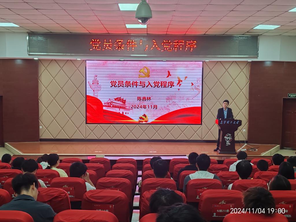 11月4日晚,水利学院分党校在云塘校区文科楼200举行第44期入党积极分子培训班第四课《党员条件和入党程序》,本次课程由水利学院辅导员陈鑫林主讲。