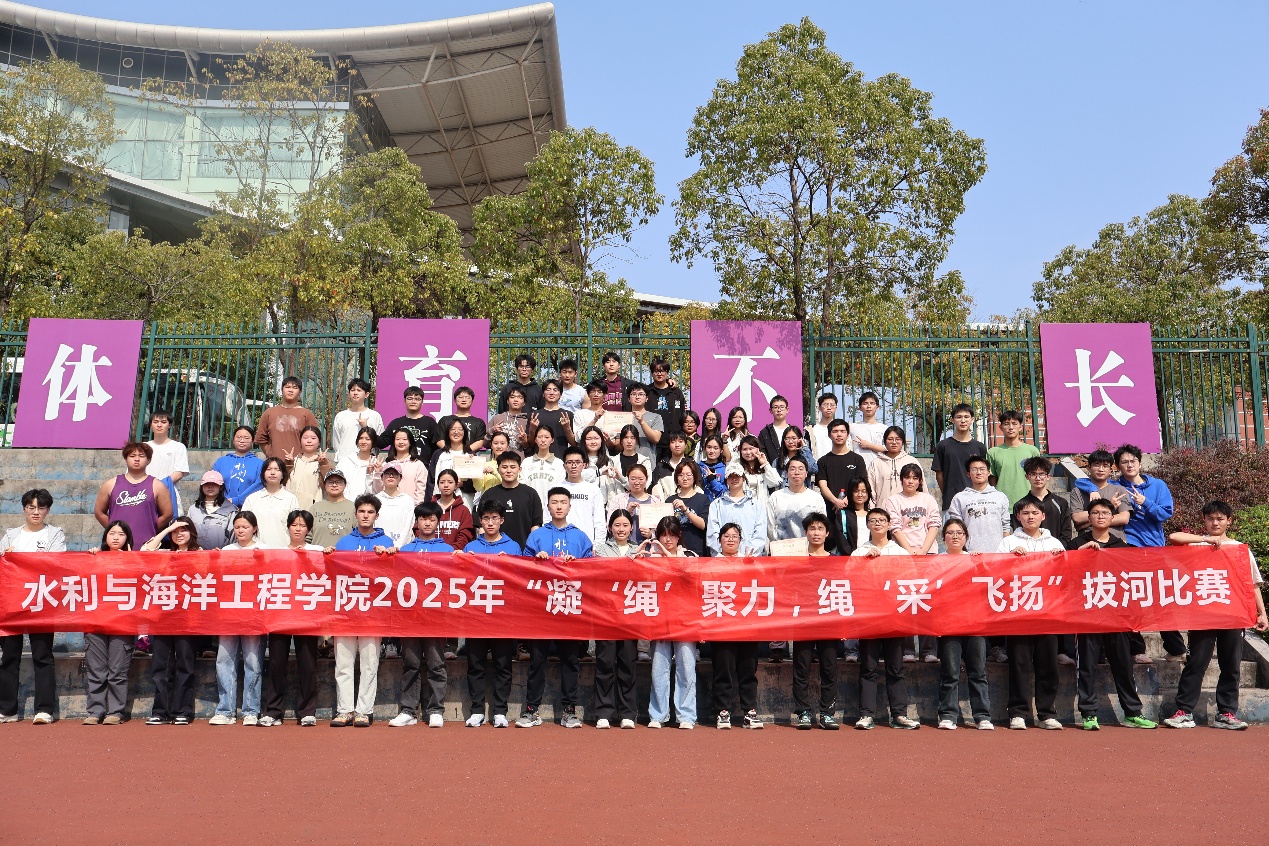 为弘扬团结协作精神,增强学生体魄,营造积极向上的校园文化氛围。3月22日下午,水利与海洋工程学院在东门田径场举行2025年“凝‘绳’聚力,‘绳‘采飞扬”拔河比赛。