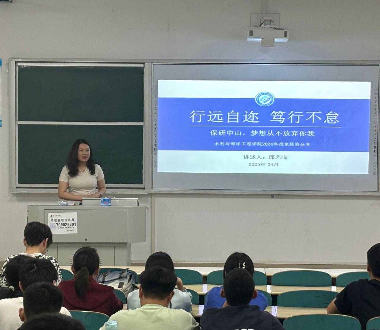 4月14日晚上19:30,水利学院在云塘校区综教A205、A206教室举办第四十五期“水润讲坛”,主题为“保研攻略分享”。本次讲坛特别邀请了成功保研至重庆大学的舒文锋和保研至中山大学的邱艺鸣作为主讲嘉宾,为50余名同学分享了他们的宝贵经验。