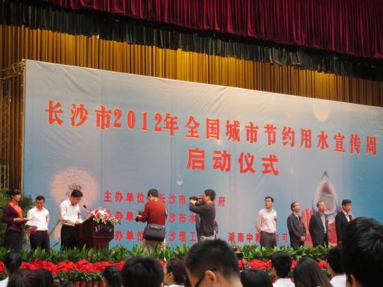 5月15日上午,由长沙市人民政府主办,长沙市水务局承办,威廉体育williamhill、湖南中粮可口可乐有限公司共同协办的“长沙市2012年全国城市节约用水宣传周”启动仪式在威廉体育金盆岭校区体育馆成功举行。长沙市委及长沙市水务局有关领导出席本次启动仪式。