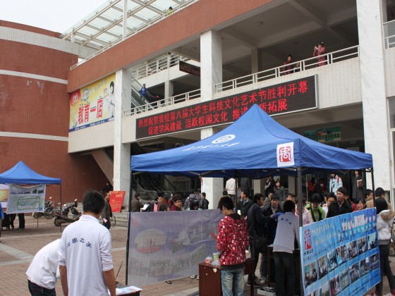 随着威廉体育williamhill第七届社团风采月的顺利开始,大禹之子青年志愿者协会主办的,环保志愿者协会、环保联盟等协会共同参与的“保护母亲河”社团联合活动轰轰烈烈地展开了。3月16日中午11:30,活动在甘怡园前举行,各社团纷纷展示协会环保成果,以各种新颖形式号召长理学子加入到保护母亲河的行动中来。校党委书记王耀中、学工部部长邹兴平、团委副书记方琼、校友办主任宋建设、水利学院前党委书记、现校友办正处级调研员王乃厚、水利学院党委副书记田向阳等领导更亲临活动现场,视察活动进展情况。