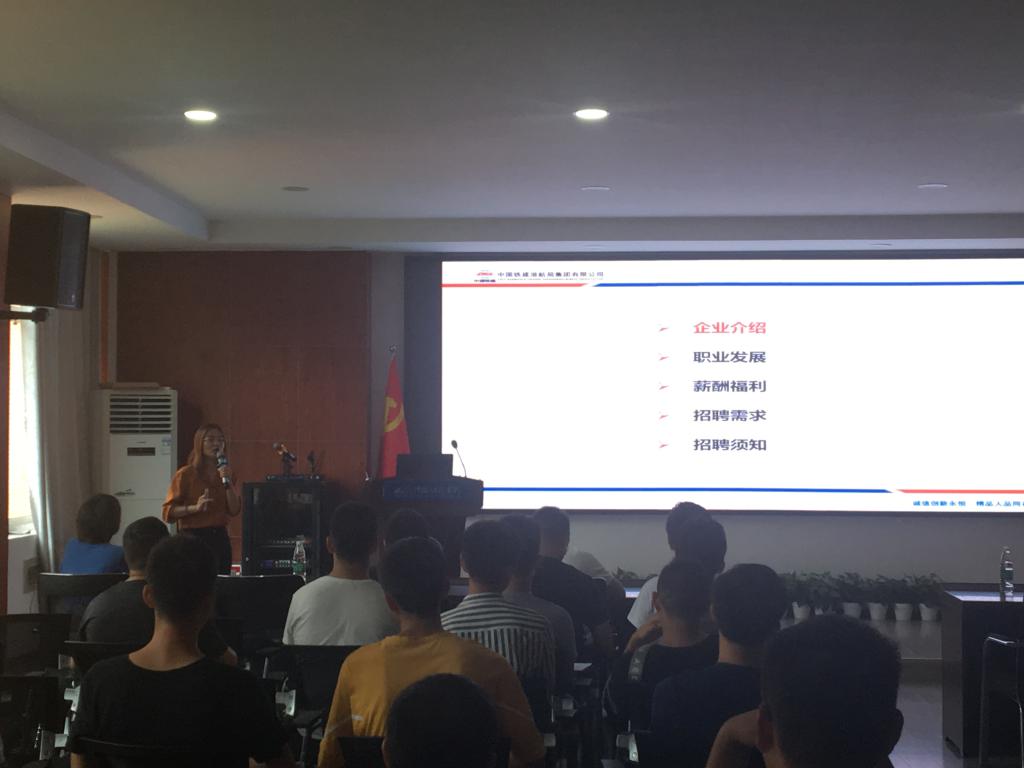 本次宣讲会首先由负责人简要地介绍了中国铁建港航局:中国铁建港航局是中国乃至全球最具实力、最具规模的特大型综合建设集团之一、世界500强——中国铁建旗下唯一一家以水工为主的全资子公司。紧接着,负责人介绍了同学们比较关心的中国铁建港航局的薪酬体系、福利待遇等。之后,宣讲负责人说明了招聘的基本要求并向在场的同学们发出了诚挚的