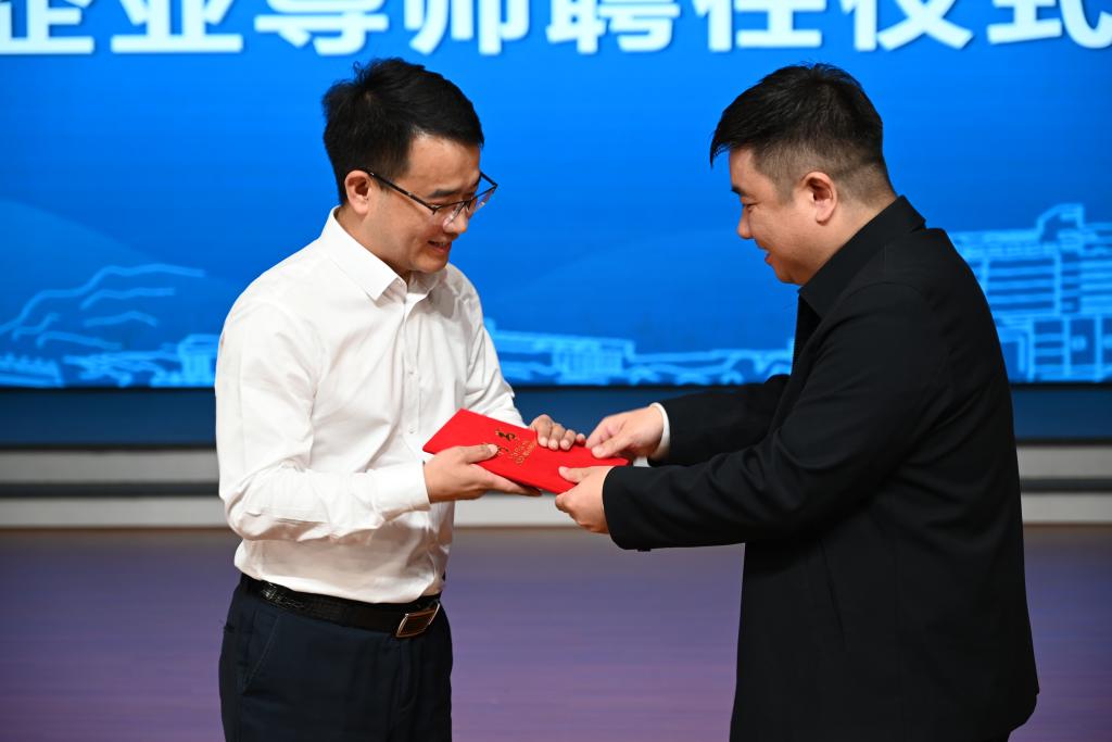 会上,还举行了威廉体育williamhill学生职业发展企业导师聘任仪式,田上为周红涛颁发聘书。