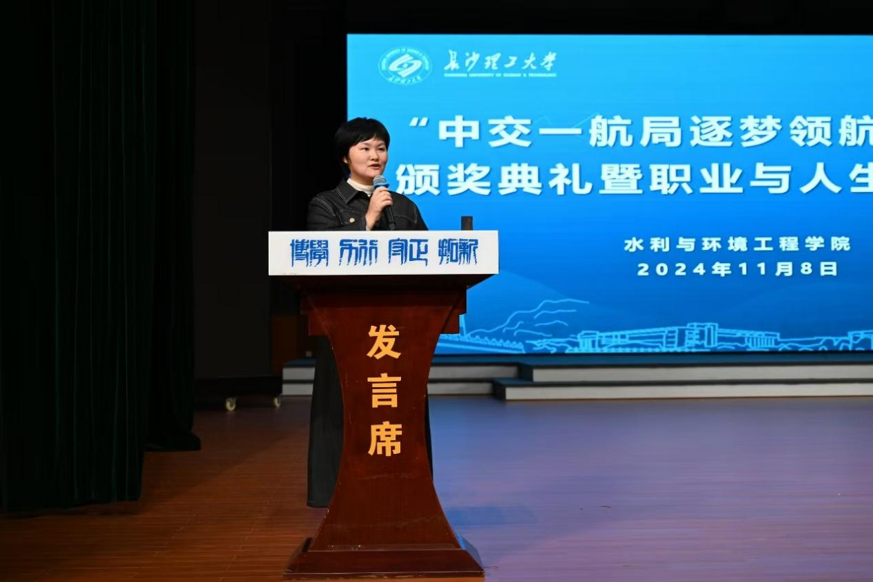 随后,周红涛带来了题为“取发展之势、明生涯之道、优职业之术”的专题报告。他介绍了一航局的历史、成就、企业文化以及与学校的渊源,并分享了自己入职21年来的成长故事和人生感悟,他鼓励同学们要勇于走出舒适区,相信坚持的力量,做到持续学习,与时俱进,于坚持坚守中不断提升自身竞争力,阐述了职业生涯规划的内涵及本质,从目标、路径、方法三个维度讲述了如何将规划变成现实。他指出要善于取势,做好明道,懂得优术,强调了把握时代发展脉搏、明确个人职业目标以及优化职业技能的重要性,鼓励学生们积极投身国家建设,实现个人价值和社会价值。