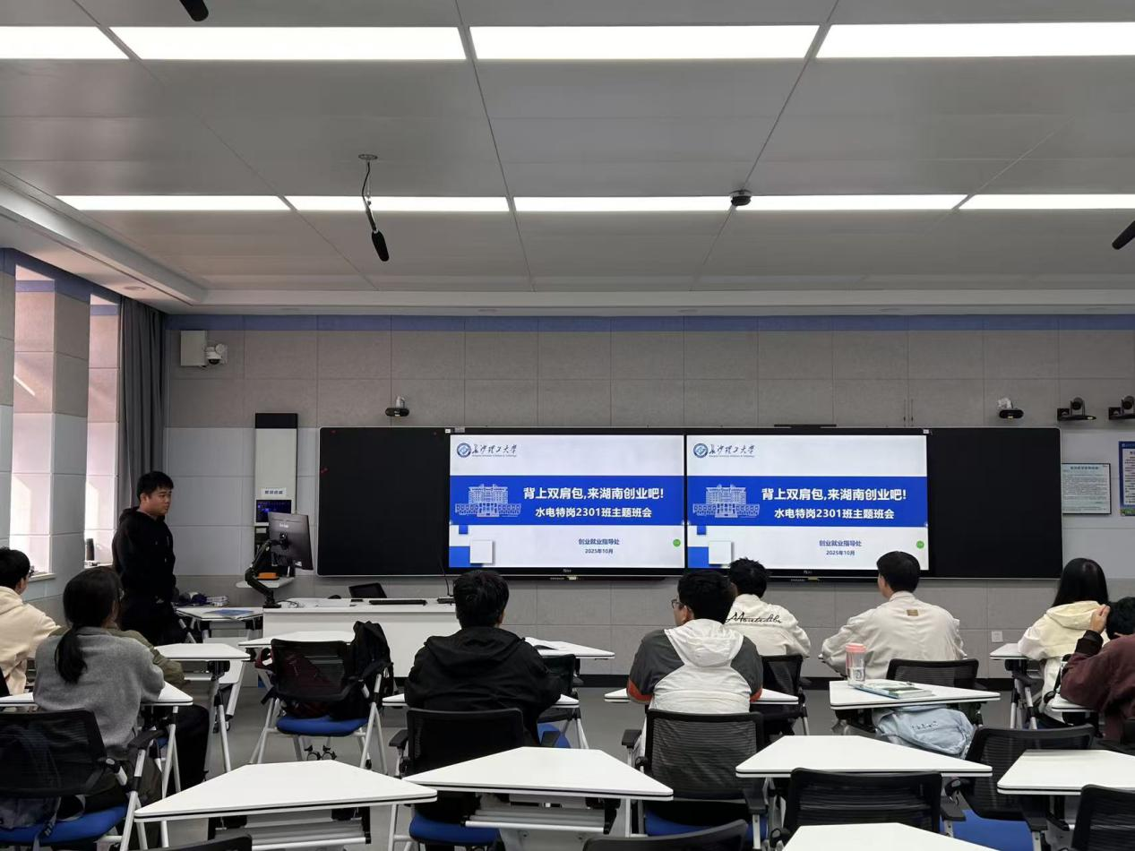 10月水利学院组织全院各班级开展学习支持大学生创业政策主题班会。本次班会为深入贯彻落实湖南省及学校关于支持大学生创新创业的系列政策措施,激发我院学子的创新创业热情,扫除创业路上的政策盲区,为同学们播下“敢闯敢创”的种子。