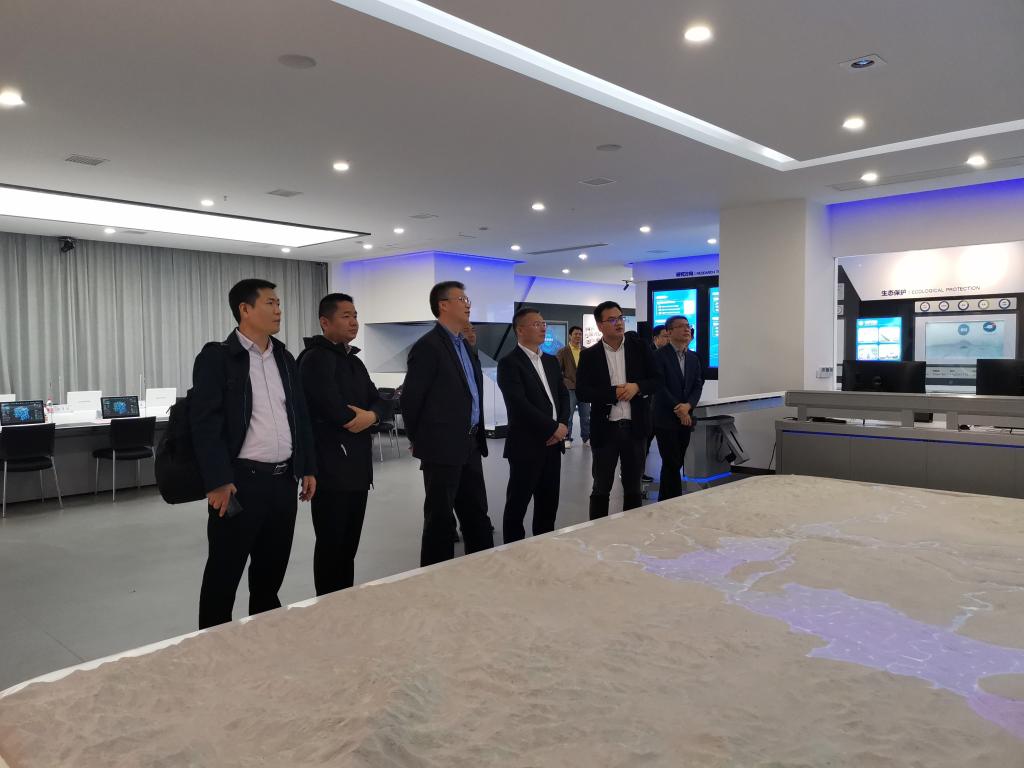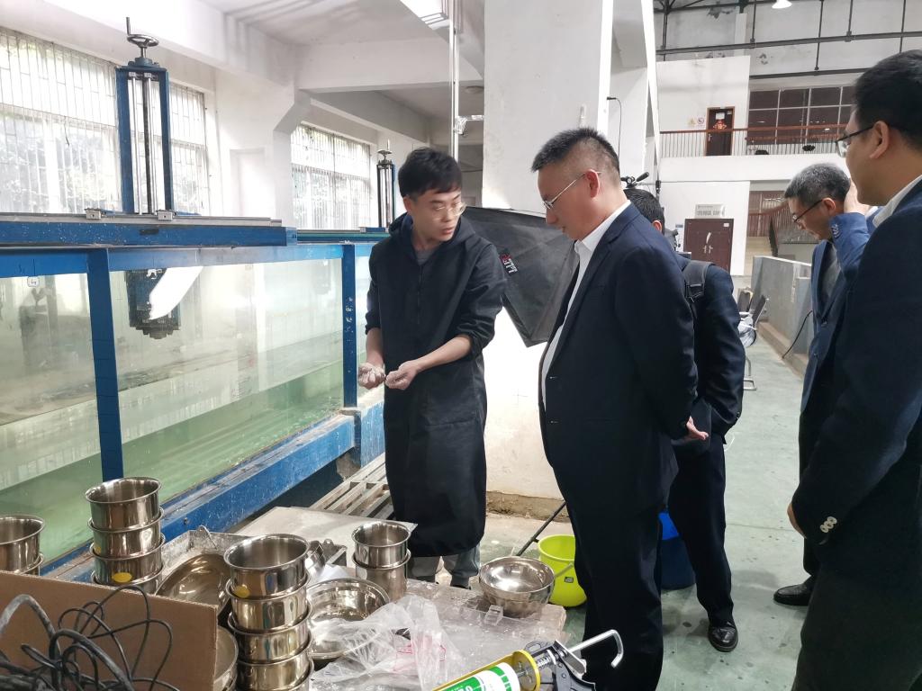 刘永满一行首先参观了水科学与水灾害防治湖南省重点实验室的水工、河工和波流水槽等物理模型试验场地。随后来到洞庭湖水环境治理与生态修复湖南省重点实验室,详细了解了洞庭湖实验室的建设背景、建设历程以及发展目标、研究方向以及智慧洞庭综合信息化平台等方面。