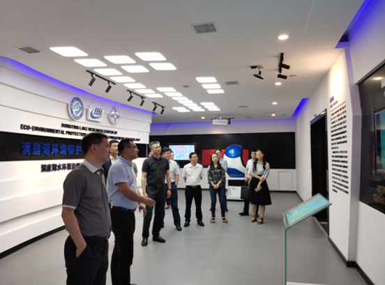 邓斌副教授首先向邳建东等介绍了洞庭湖的概况及所面临的机遇与挑战,洞庭湖实验室建设历程、主要研究方向,并重点介绍了智慧洞庭综合信息化平台。