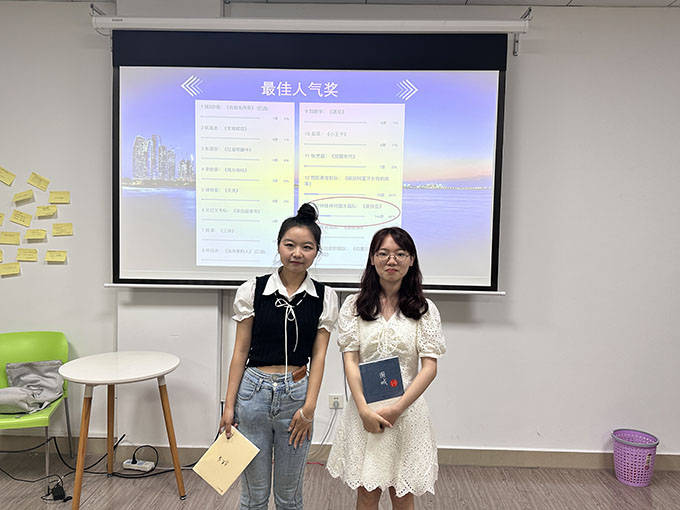 在分享环节,同学结合自身成长经历,分享自己读到的好书,畅谈读书体会,交流读书心得,营造浓厚的阅读氛围。从《梁启超家书》到《觉醒年代》,从《红星照耀中国》到《小王子》,本次活动为同学们搭建了以书会友、交流切磋、展示才学的平台。在互动环节中,“盲盒挑战赛”之歇后语赛道考验了选手们的知识储备,“正话反说”之词语句赛道考查了选手们的反应能力,而在“对答如流”之诗词接龙和“书名猜猜猜”环节中大家踊跃参与,现场气氛热烈。最后根据网络投票,“一分钟推掉对面水晶”队获得最佳人气奖。