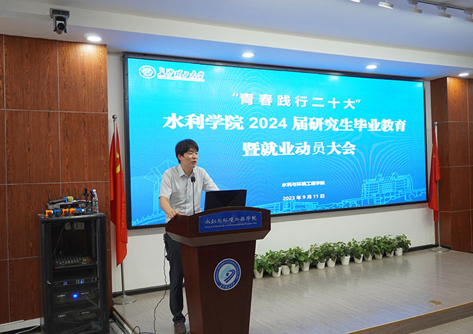 为全面推进学院2024届研究生毕业生就业工作,引导毕业生树立正确的就业观,养成良好的行为规范,9月11日下午3时,水利学院在云塘校区工三B319召开2024届研究生毕业生毕业教育暨就业动员大会。院党委副书记银波、副院长李毅、学工办老师杜丘、陈鑫林、王正博参加以及2024届全体研究生参会,会议由罗鑫主持。