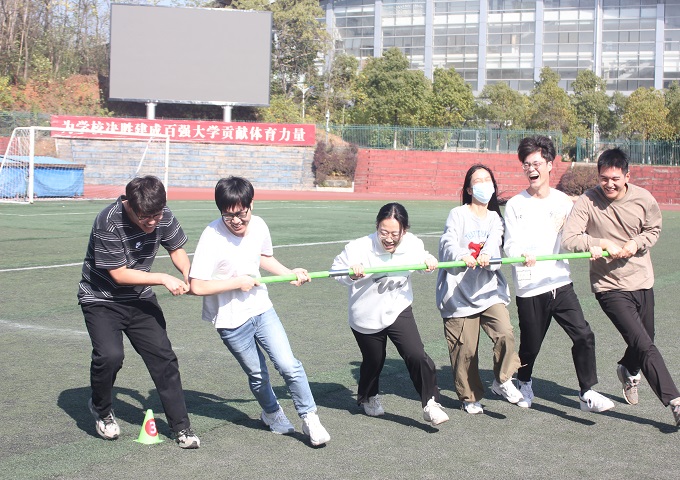 本次运动会集娱乐与竞技为一体,采用积分赛制进行排名,设置了跳长绳、拔河、爱锤才会赢、螃蟹赛跑、S形旋风等多个环节。各团队斗志昂扬、全力以赴,各队员齐心协力、配合默契,紧张激烈的同时又井然有序、趣味横生,赛场上气氛活跃,加油呐喊声此起彼伏。最终,“霸王别姬队”获一等奖,“好想和你凑一对”获二等奖,“男生女生向前冲队”和“冠军种子队”获三等奖,第二届研究生趣味运动会在轻松欢乐的氛围中落下帷幕。