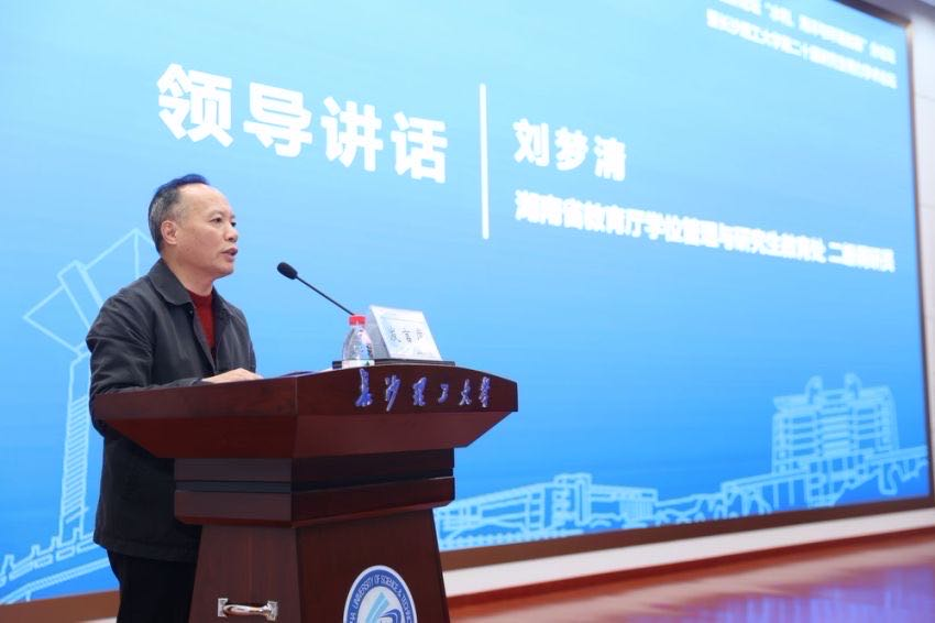 湖南省教育厅学位管理与研究生教育处二级调研员刘梦清在开幕式讲话中指出,人才是国家发展的动力与基石,他鼓励研究生在科研实践中发现真问题、做出真课题、锤炼真本领。刘梦清强调要找准研究生教育支撑国家全面现代化、民族全面复兴和人的全面发展的着力点,以自信自强、守正创新、踔厉奋发、勇毅前行的精神状态,为全面实现“三高四新”美好蓝图提供有力的人才支撑和科学技术支持。