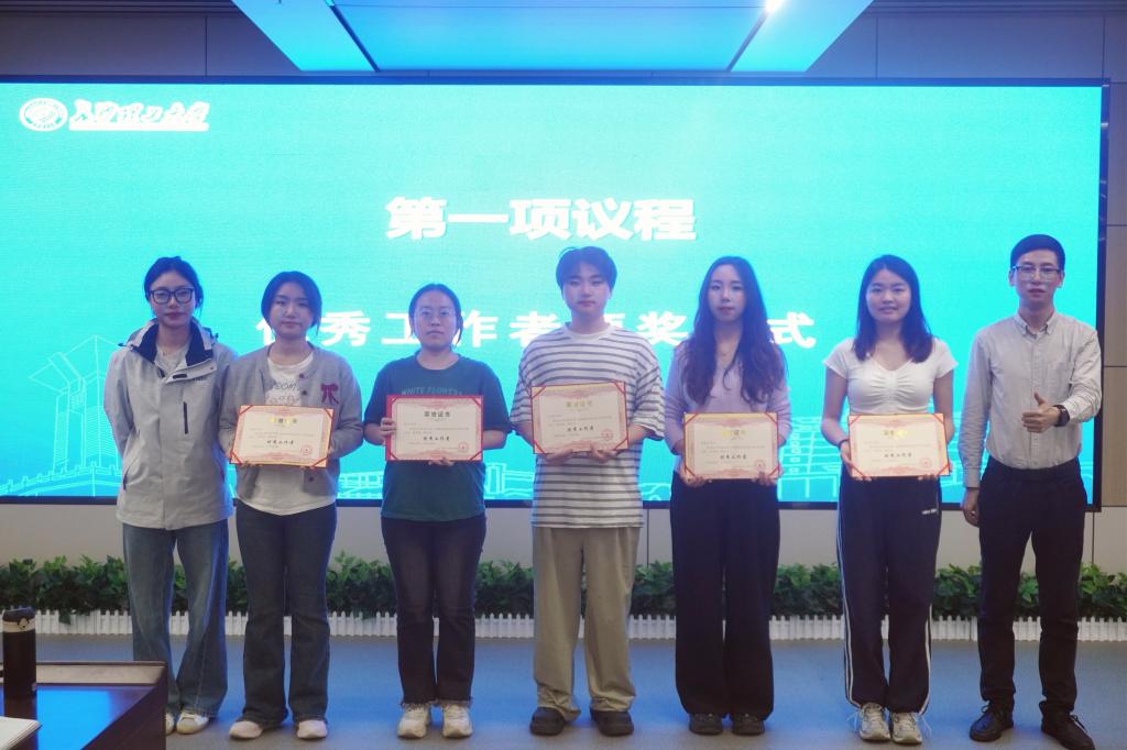 会上,李永睿为2024—2025年第一学期研会优秀工作者颁发证书并合影留念。他要求研会立足学院特色打造品牌活动,既要保持好水利特色这张“金名片”,更要将优秀作风“代代相传”;高年级同学要“手把手教方法,心连心传经验,确保换届顺利进行;研会全体成员要以“功成不必在我,功成必定有我”的担当,实现研会“传棒不断档,交旗不减速”的平稳过渡。李永睿充分肯定研会上学期的工作,强调研会全体成员要戒骄戒躁、再接再厉,向兄弟学院及顶尖高校“取经问道”。他表示:“研会是个大家庭,各部门需要通力配合、相互支持,继续为研会创造更高的荣誉,更多的优秀成果。”