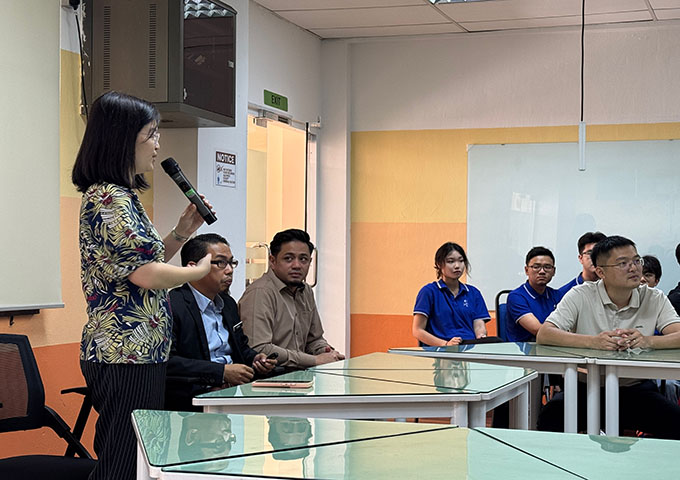 此次交流学习是水利学院加强国际交流与合作、提升学生国际视野和创新能力的重要举措之一。沙巴大学作为马来西亚知名的高等教育机构,在工程技术领域有着深厚的底蕴和丰富的资源,特别是在海洋科学、工程学与信息技术等领域研究具有显著优势。研学团成员参加了沙巴大学组织的开班会议,沙巴大学国际部副部长Beatrice详细介绍了学校的办学历史、特色以及研学期间的课程安排,并为学生们讲解了学生保险、体检等事宜,此次会议为研学团后续的学习和生活奠定了坚实基础。副院长盛丰强调:“真正的工程教育必须突破课堂边界。希望同学们以‘双重视角’开展研学——既要作为学习者吸收沙巴大学在海洋工程领域的先进技术,更要作为文化使者,在比较研究中深化对人类治水文明多样性的理解。这种跨文化的专业认知能力,将是未来工程师的核心竞争力。”