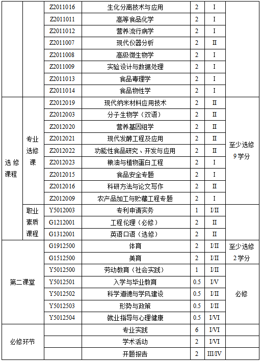 本领域是与功能食品原料生产、食品加工与制造、食品质量安全控制与监管、营养与健康食品开发等领域任职资格紧密关联的专业学位,目标是培养具有高度历史使命感和社会责任感,根植家国情怀和敬业精神,具有食品科学、食品加工及食品营养的基础理论、实践技能和业务管理能力,了解学科前沿、研究进展及发展趋势,熟悉解决本领域产业问题的方法和技术手段,具备解决产业实际问题能力的高层次应用型人才。具体培养要求如下: