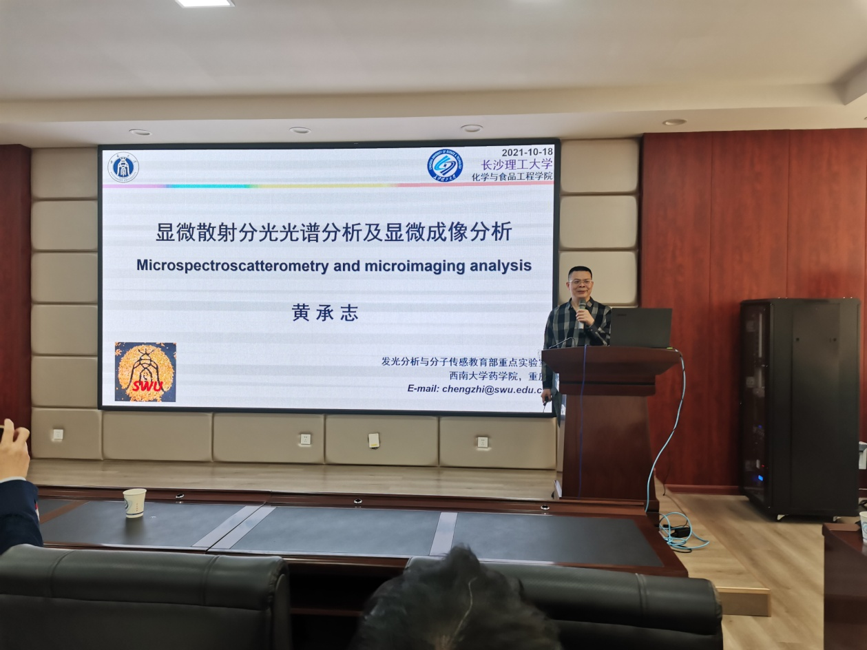 2021年10月18日10:00,应威廉体育化学化工学院的邀请,国家杰青、西南大学化学化工学院黄承志教授来威廉体育开展学术交流,并在云塘校区工科3号楼A320报告厅举行了题为“显微散射分光光谱分析及显微成像分析”的学术报告会。报告会由化学化工学院副院长卿志和主持,化学化工专业青年教师和研究生百余人聆听了报告。