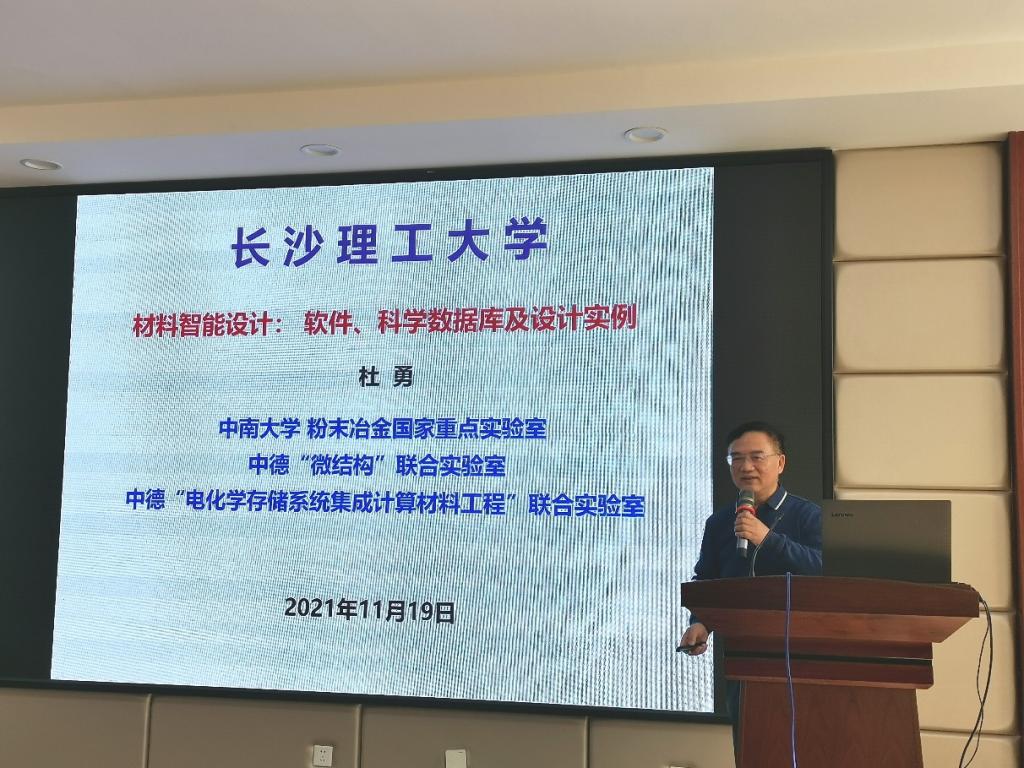 杜勇教授分别从背景、材料智能设计软件、材料智能设计数据库、材料与产品设计一体化实例几方面进行了详细阐述。报告结束后,杜勇教授与师生开展了热烈的讨论,杜教授用风趣的语言回答了老师和同学们提出的问题,让在座的师生受益良多。