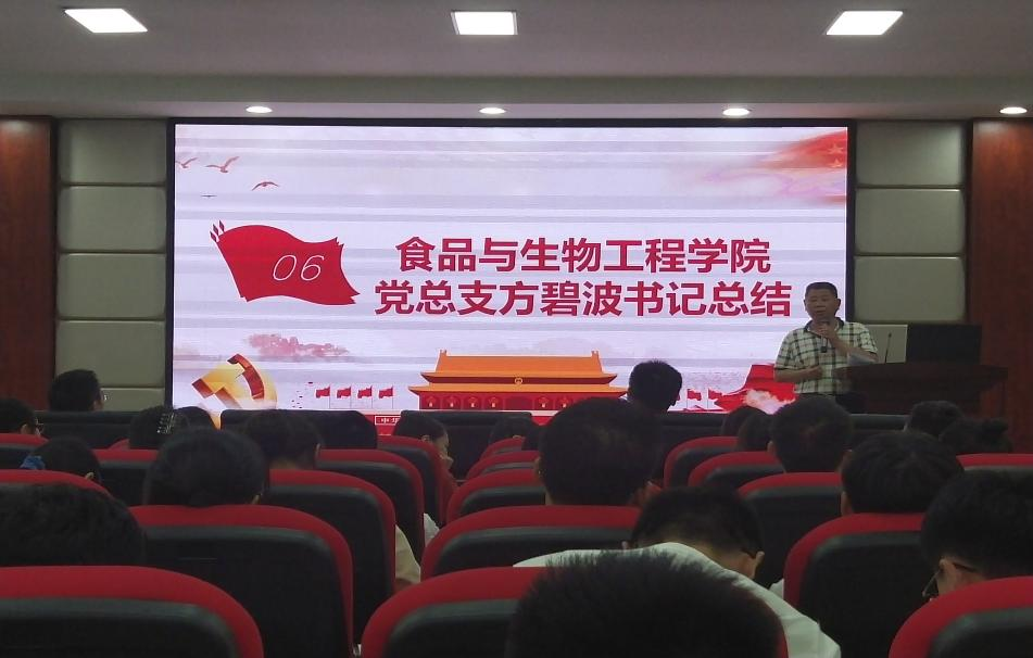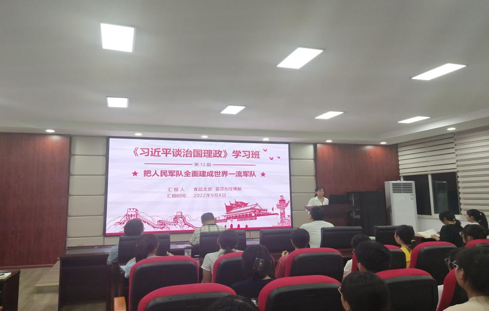 2022年9月8日,威廉体育williamhill食品与生物工程学院本科生食品党支部在工科三号楼A320举办《习近平谈治国理政》读书班第七次读书分享会。食品学院党总支书记王建辉、党总支副书记练黎旋、专职组织员方碧波、学工办老师胡佳佳等师生近100余人参加此次活动。