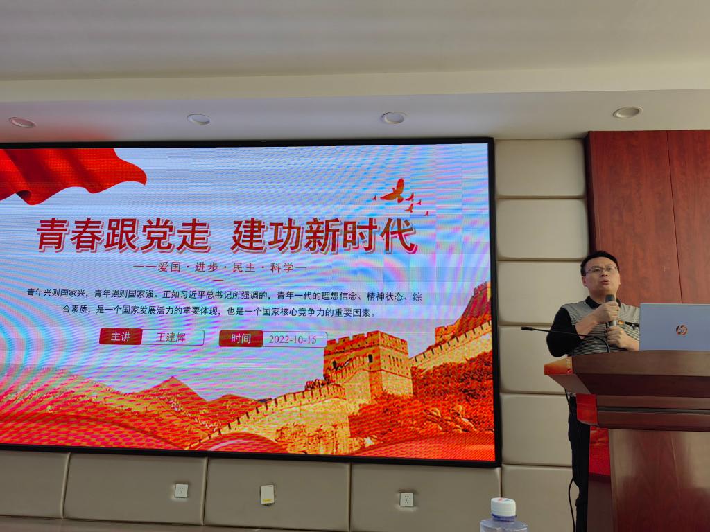 10月15日,在工三A320召开的2022年秋季分党校开班仪式上,食品学院党总支书记王建辉为全体学员讲授“青春跟党走,建功新时代”专题党课。