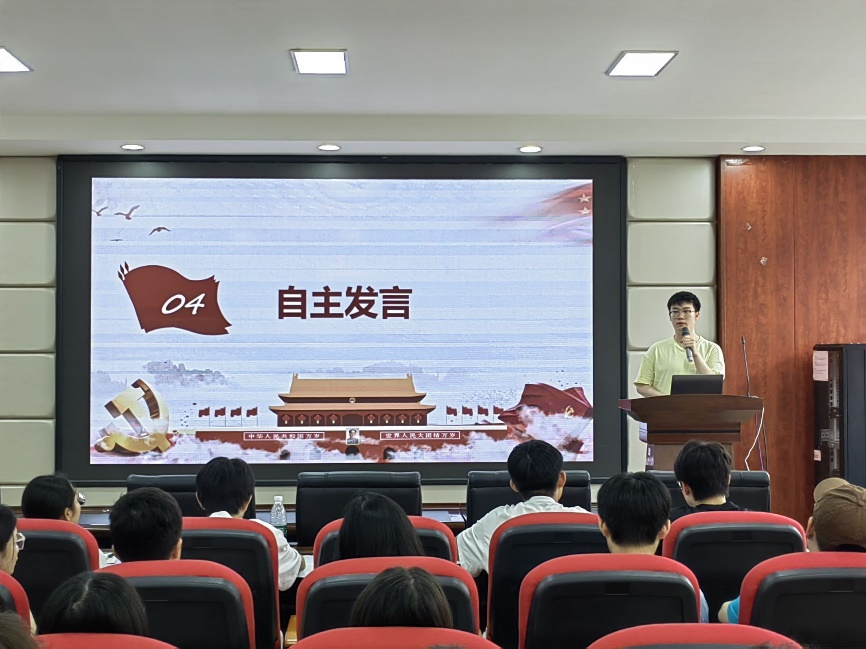自主发言环节,学员代表一一上台分享。其中,王传洋同志从国际和国内角度对于新质生产力发展的意义做出分析,表示我们应该重视科技创新和生产力的发展,粟昱源同志则从如何发展新质生产力出发,以追求创新,因地制宜发展等角度阐释如何去发展新质生产力。