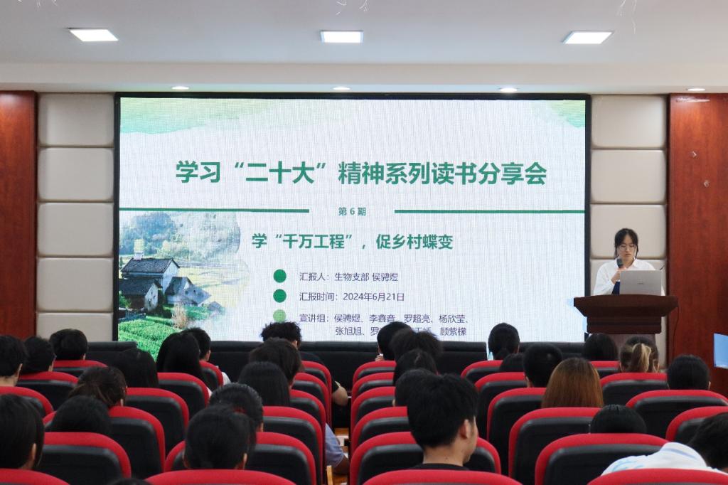 6月21日中午,食品学院学生党支部在工三A320开展了“二十岁遇上二十大”党的二十大精神专题分享会第三季第六期“‘学千万工程’,促乡村蝶变”。学生代表100余人参与本次活动。