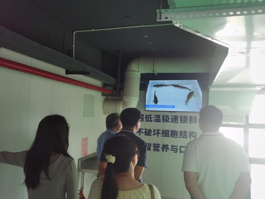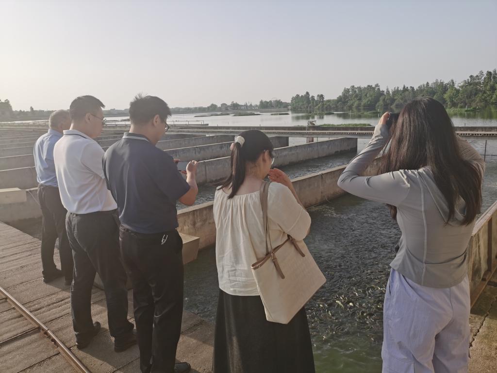 在企业董事长胡再明校友的陪同下,调研团一行实地走访了“瘦身鱼”特色养殖基地、功能性水产品研究加工基地、配套饲料加工基地,全面了解企业产业化理念、主营业务和发展前景。