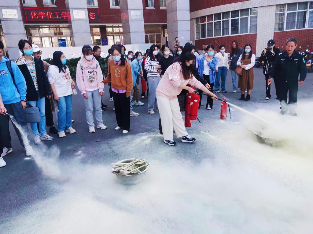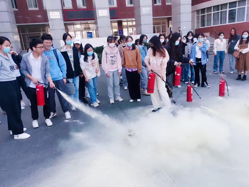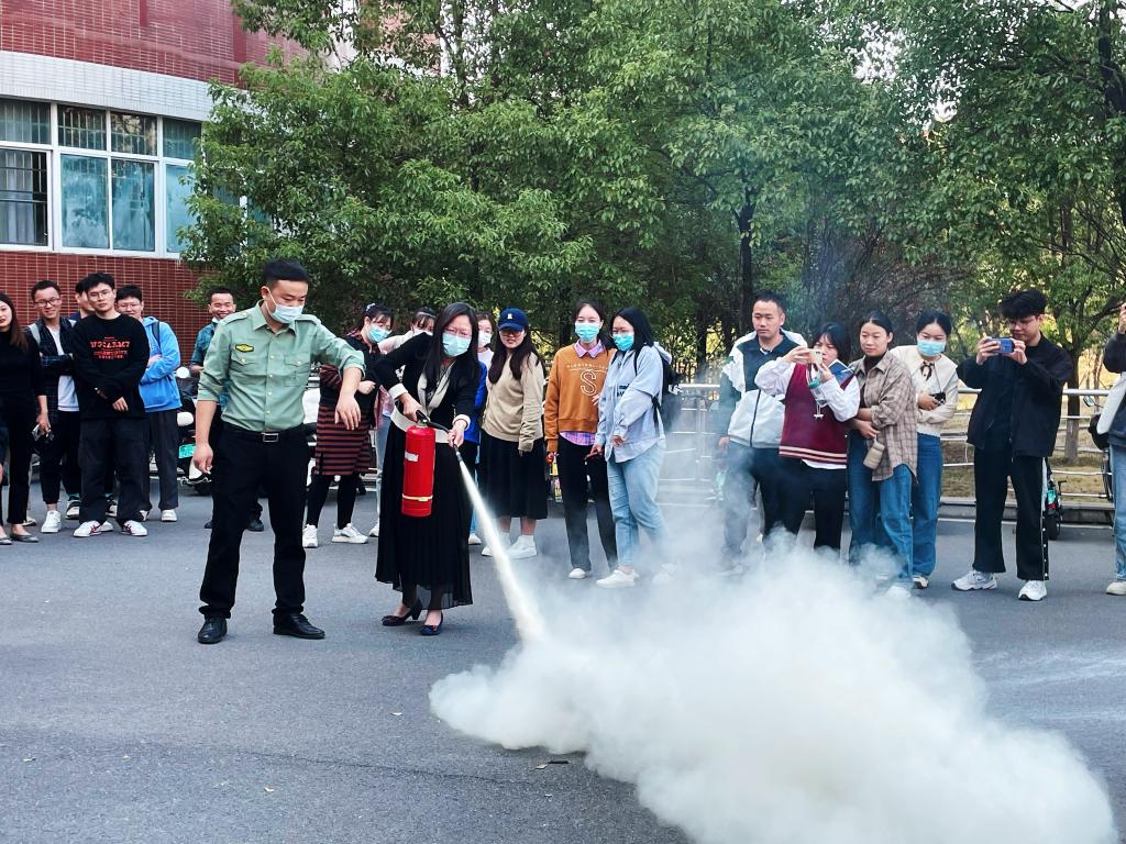 培训结束后,学院组织师生开展了消防应急疏散演练,邹教官在演练前介绍了逃生注意事项和方法,全体人员在学院工作人员的指挥下安全、快速、有序地疏散到了学院一楼大坪,紧接着在学校保卫处工作人员和邹教官的指导下,师生们都踊跃参与,手持灭火器对现场准备好的火盆进行灭火实操。