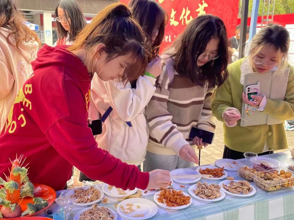 现场“游戏+美食”主题活动潮玩不断、创意十足,同学们在欢声笑语中了解美食发源地、进行食物价格竞猜等,在游戏中树立起营养健康的饮食观念,进一步塑造良好的饮食文化。参与者田瀚诗表示:“食物是一种文化,也是一种记忆,我今天品尝了很多之前少有机会尝到的地道美食,当我们深入了解每一道菜时,我们才能真正懂这一道菜。”