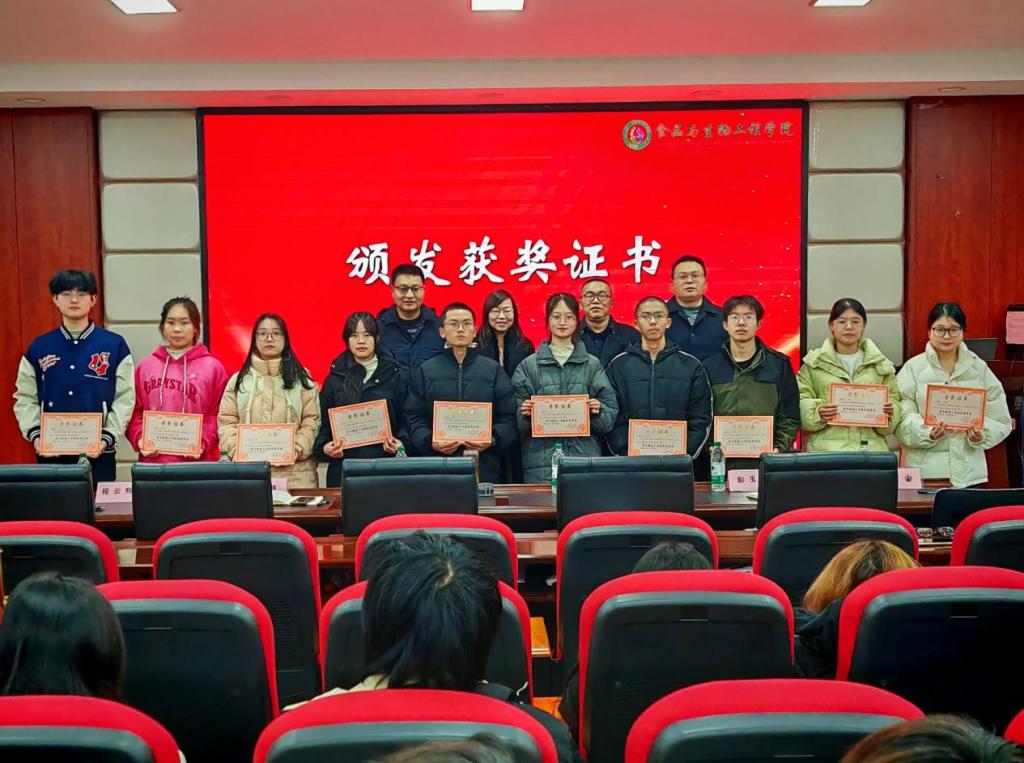 王建辉宣读了获奖学生表彰文件,共有10名学生获得“雪天精英人才培养奖学金”。李加兴、高顺利、王建辉、程云辉共同为获奖学生颁奖。食品2201班谢早早作为获奖学生代表发言。