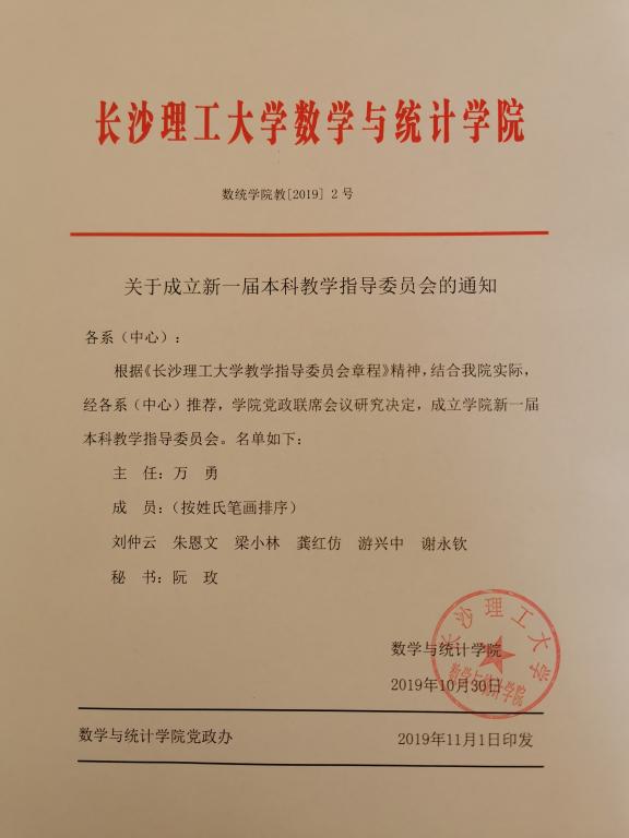 关于成立新一届本科教学指导委员会的通知