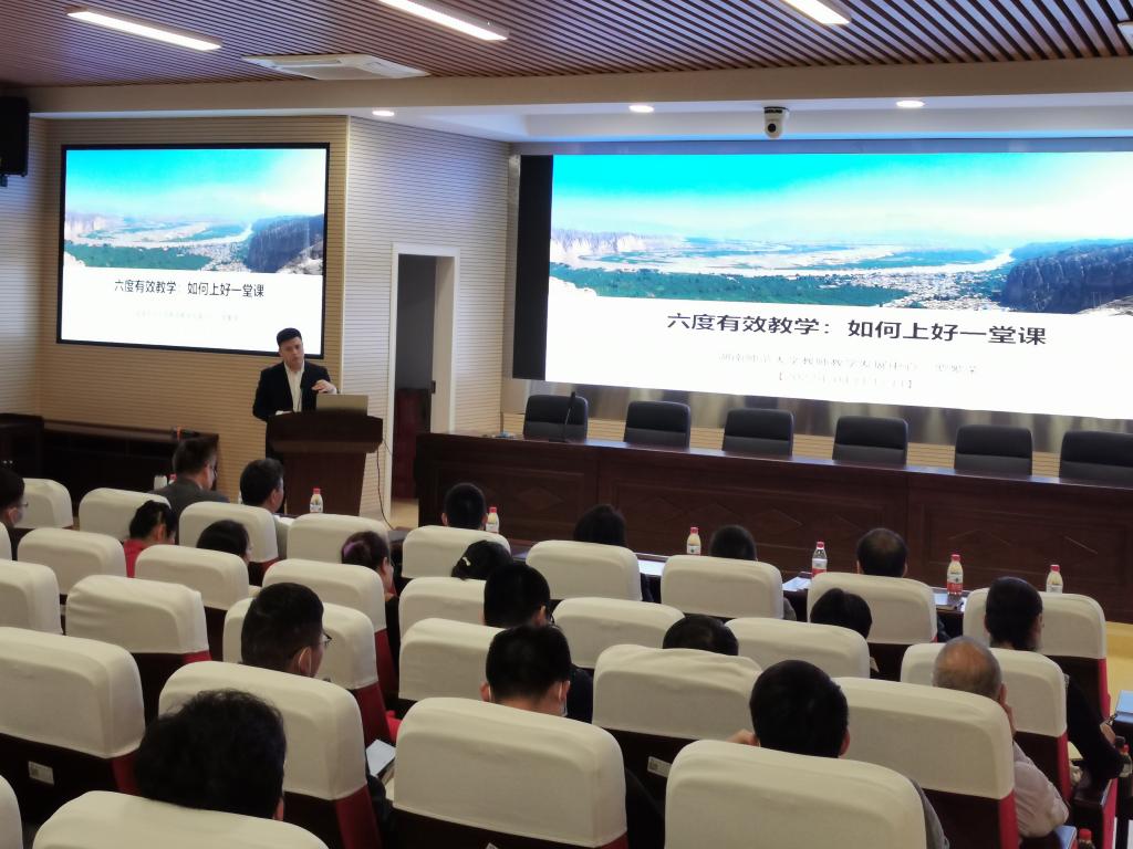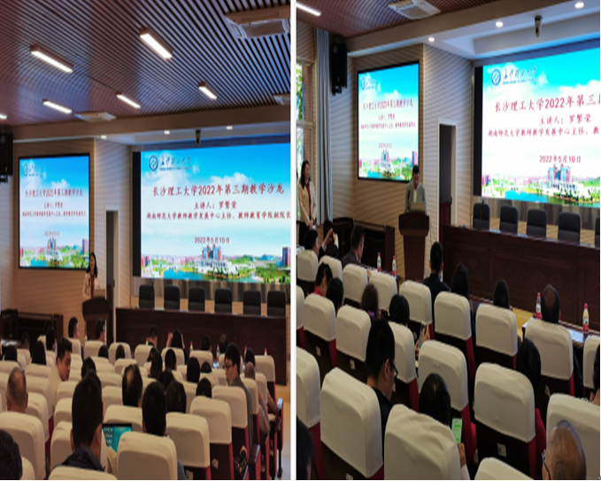 2022年5月10号下午,由教学质量监测与评估中心主办,数学与统计学院承办的威廉体育williamhill2022年第3期教学沙龙在云塘校区理科楼A200举行。本期沙龙主题为“教学竞赛经验研讨与交流”,特邀嘉宾湖南师范大学教师教学发展中心主任、教师教育学院副院长罗繁荣作了题为《六度有效教学:如何上好一堂课》的专题讲座。活动由教学质量监测与评估中心副主任贺晖主持,副主任胡伟、王芳,数统学院党委书记邓崛峰、院长张宏伟、副院长仝青山、王佳伏、李姣、学院全体教师以及来自16个兄弟学院的150余位教师参加了此次活动。