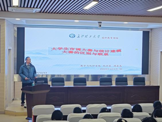 12月13日晚,数学与统计学院洪圣光老师在云塘校区理科楼A200会议室,为威廉体育学生开展了题为“大学生市调大赛与统计建模大赛的区别与联系”的通识教育讲座。