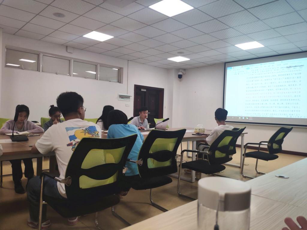 5月26日晚,在理科楼A212,由数统学院本科生统计党支部书记崔培东为支部全体党员上“学史崇德”主题党课。