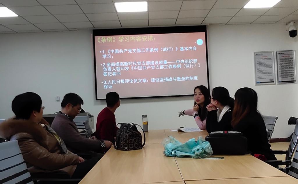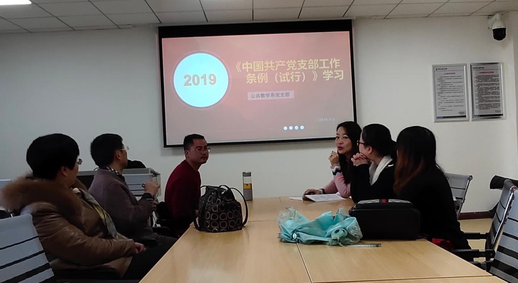 在学院分党委的号召下,公共数学系党支部全体党员于2019年1月2日上午10点,在系党支部活动室开展了学习《中国共产党支部工作条例(试行)》的组织生活会。通过此次学习和思想交流,全体党员深入学习领会了《条例》制定的重要意义:《中国共产党支部工作条例(试行)》以习近平新时代中国特色社会主义思想为指导,贯彻党章要求,既弘扬“支部建在连上”的光荣传统,又体现基层创造的新做法新经验。《条例》共8章37条,内容全面、规定明确,覆盖了党支部建设的各领域、各方面对党支部工作作出全面规范,是新时代党支部建设的基本遵循。