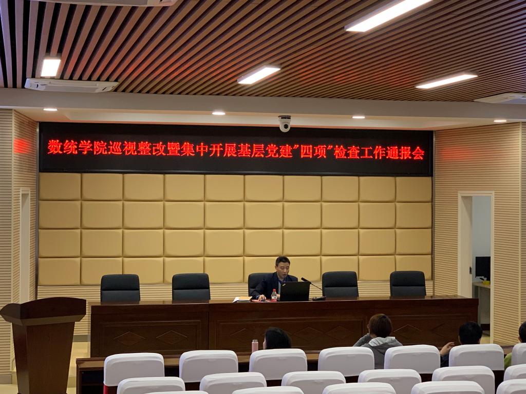4月2日下午,在理科楼A200召开“数统学院巡视整改暨集中开展基层党建‘四项’检查工作通报会”,学院全体师生党员参加,会议由党委书记张宏伟主持。