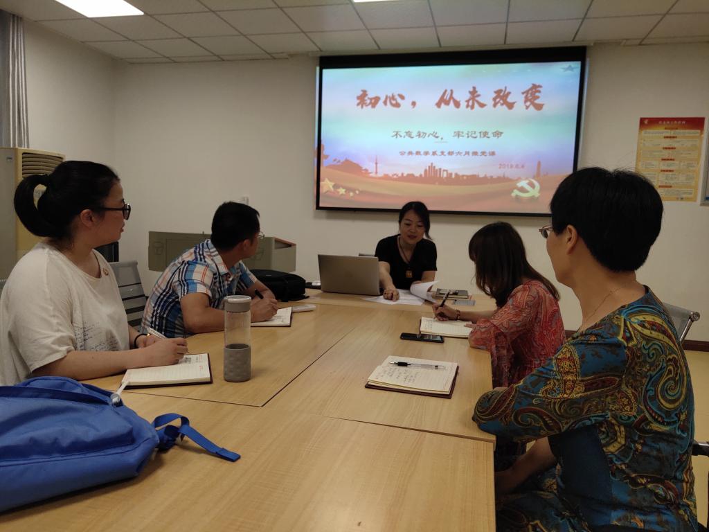6月4日,公共数学系党支部全体党员在系支部党员活动室,开展了支部书记讲党课的主题党日活动。支部书记吴烨同志上了题为“我将无我,不负使命”的微党课。
