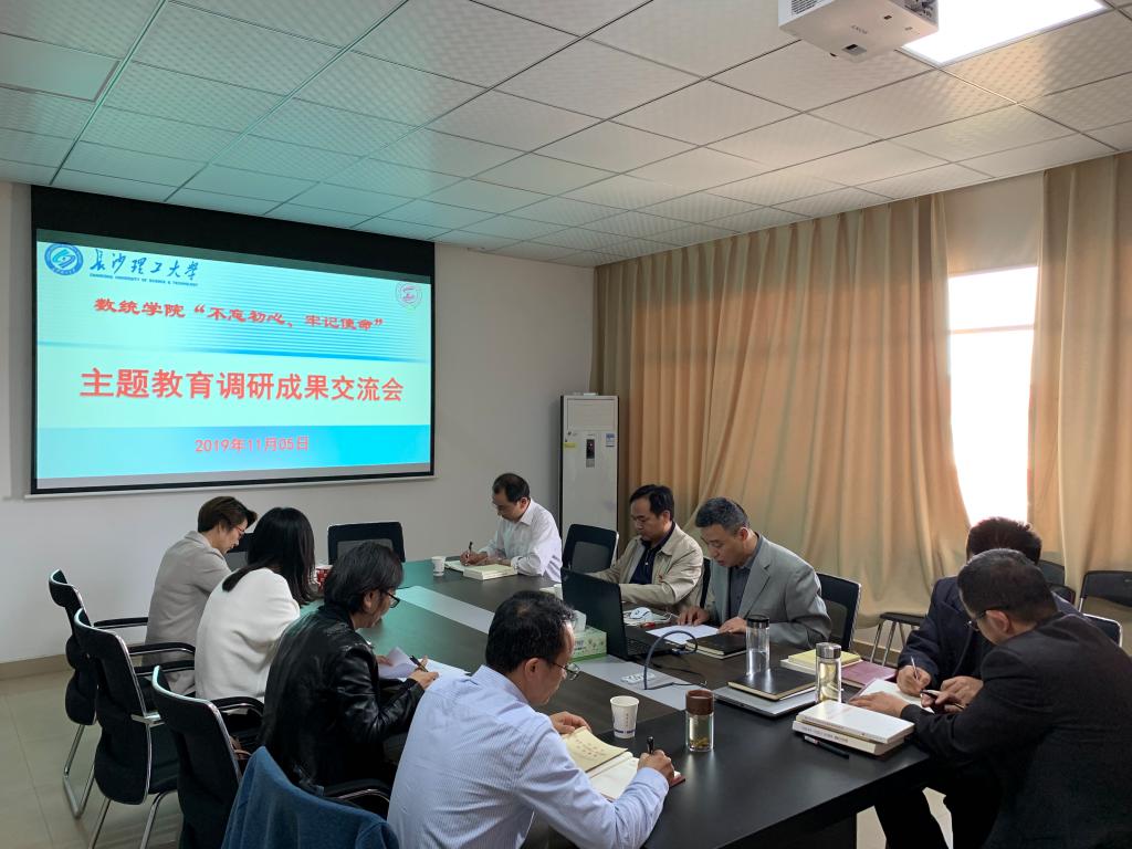 11月5日下午,数统学院在理科楼A503党员活动室召开“不忘初心、牢记使命”主题教育调研成果交流会,学校“不忘初心、牢记使命”主题教育第一指导组蔡立新老师到会指导,院党委委员、领导班子成员出席,会议由学院党委书记张宏伟主持。