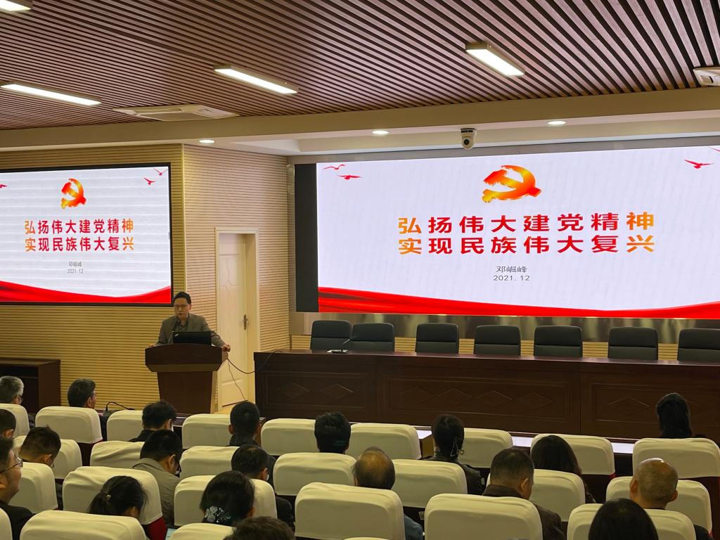 12月7日下午,学院党委书记邓崛峰在理科楼A200以“弘扬伟大建党精神,实现民族伟大复兴”为题,为全院师生党员上了一堂生动的专题党课。全院师生党员159人参加听取党课。
