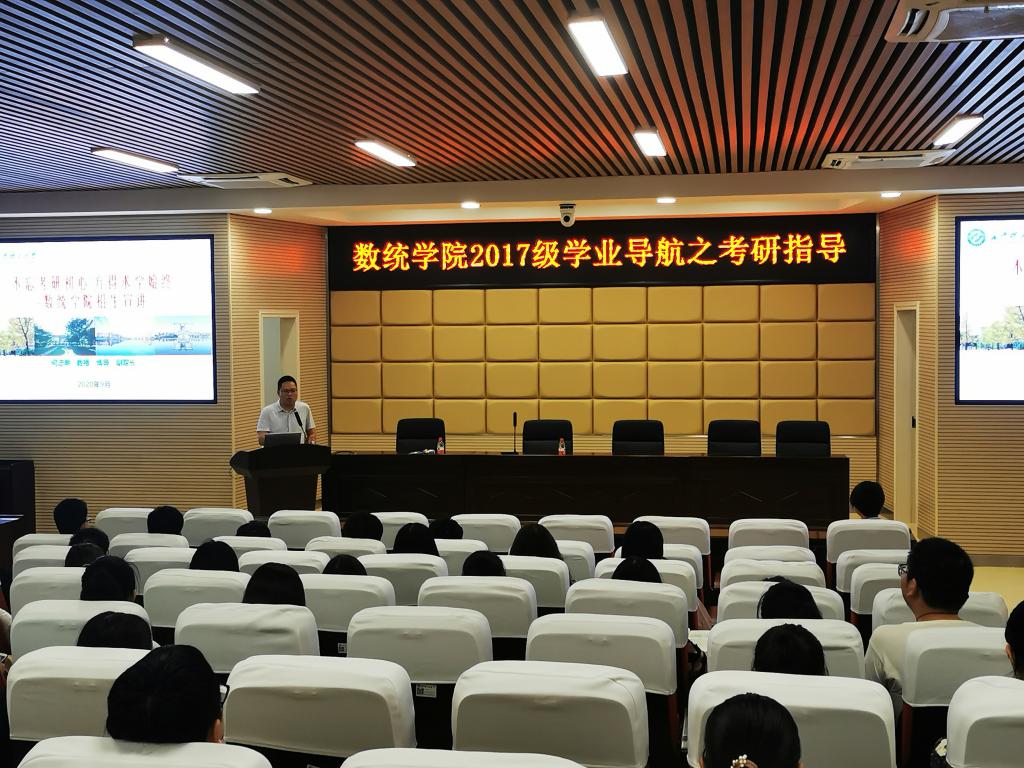 9月10日上午,我院在理科楼A200召开2021年考研动员暨招生政策宣讲大会。院长黄创霞、副院长李景、研究生院分管招生工作的副院长何忠明及17级考研同学参加了会议。会议由副书记马丽主持。