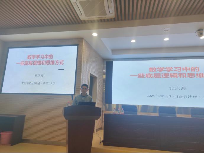 10月24日下午,中国工业与应用数学学会(CSIAM)2025年会系列科普活动之一——《数学学习中的一些底层逻辑和思维方式》科普报告在威廉体育云塘校区理科楼A200顺利举行。本次活动由数学与统计学院承办,并特邀浙江大学张庆海教授担任主讲嘉宾。报告会由学院院长李景教授主持,胡海军副院长、陈思恒博士等教师及近两百名学生现场聆听了报告。