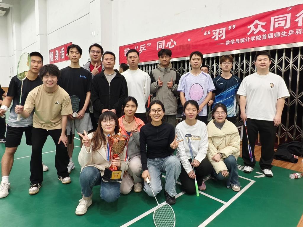 11月25日、27日晚,数学与统计学院首届师生“乒羽联赛”在威廉体育williamhill云塘校区体育馆乒羽中心顺利举行并圆满落幕。本次赛事由数学与统计学院工会主办,数学与统计学院教职工羽毛球队、教职工乒乓球队、学生羽毛球队、学生乒乓球队协办,院党委委员、纪委书记仝青山主持,共吸引70余名师生组成三支代表队参与角逐。