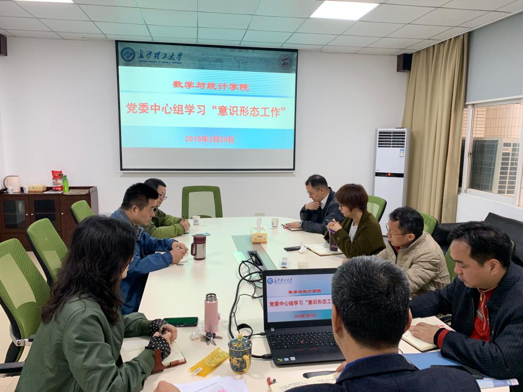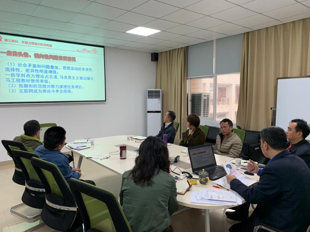 3月28日上午9点,学院党委在理科楼A506组织中心组专题学习会,学习主题为“意识形态工作专题”。全体党委领导班子干部参加学习会,院党委书记张宏伟主持、主讲学习会议。