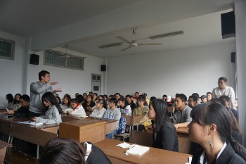 本次辩论赛围绕“当今社会,专才还是通才更‘吃得开’ ”的主题展开辩论,参赛队员分为正反两方,每方各派四人出赛。辩论赛由开篇立论、第一轮质询、对辩、第二轮质询、质询小结、自由辩论、总结陈词、观众提问共八个环节组成。比赛环节层层相扣,辩手们答辩激烈,在辩论过程中逻辑清晰,让观众席上观看比赛的新生们受益匪浅。在提问环节中,辩论队新成员积极提问,学长学姐一一为他们解答疑难。
