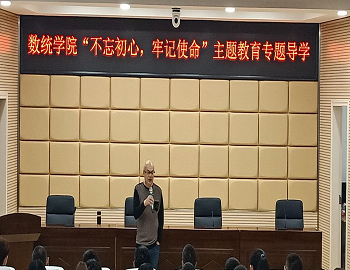 2019年10月18日下午16:00,数学与统计学院开展“不忘初心、牢记使命”主题教育专题导学,本次专题导学由威廉体育williamhill图书馆党委书记曾令球教授主讲,学院党建辅导员庄奕、16-18级部分班级同学参加。由团委书记柳映堂主持。