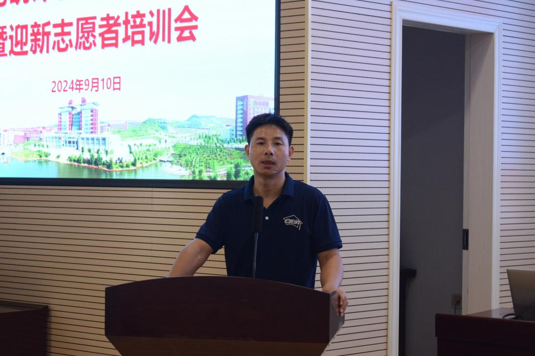 为迎接新学期的开始,确保新生能够顺利地融入大学生活,数学与统计学院于2024年9月10日在理科楼A200举办迎新志愿者培训大会,党委副书记郑忠辉、学工办老师张潇腾出席,全体团委、学生会成员、下班党干和迎新志愿者共同参加。