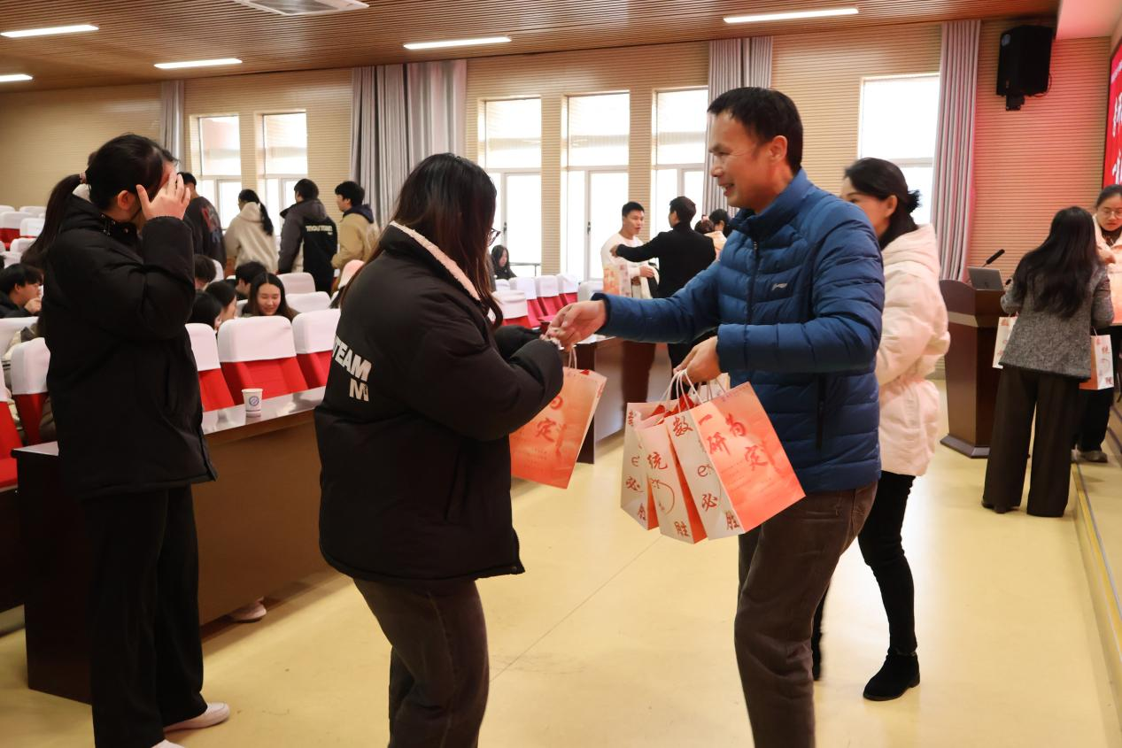 会上,2024级研究生冯佳欣作考前经验分享,王芳重点讲了考研注意事项,郑忠辉提出四个坚持,为考研学子加油鼓劲,并受邓崛峰书记委托为考研学子送上满满的祝福。统计专业龙柯蓉激动地说到:“这段时间压力很大,每天都在很紧张地学习,但今天收到学院的温暖礼包特别感动,每一件有寓意的礼物,礼品袋的精心设计,都让我们感受到了学院对我们深深地爱与温暖”。数学专业何郴城说到:“学院一直以来对我们非常关心,给我们提供考研自习室,自习室还准备咖啡、茶叶、零食等,同时也安排了学生干部定期打扫自习室的卫生,为我们考研提供了一个温暖舒适、干净整洁的学习环境。”